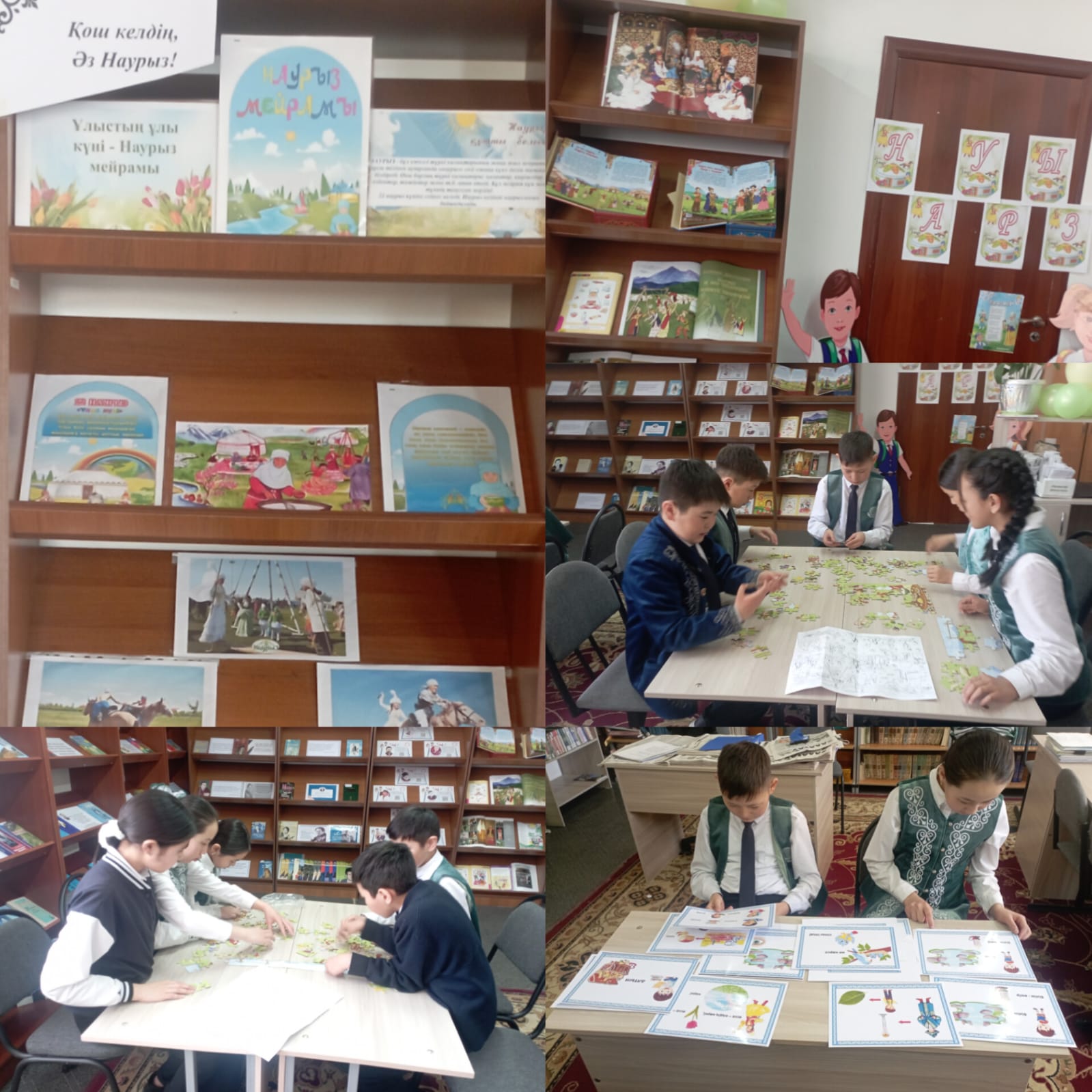Мақсаты: Әз Наурыз еңсесі биік елдіктің,іргесі сөгілмес бірліктің, ынтымақ пен ырыстың мерекесі екендігін және қазақ халқының шығармашылық дәстүрлері,ауыз әдебиетінің мұраларымен таныстырып, олардың тарихи маңызын түсіндіру. Халқымыздың салт-дәстүрлерін дәріптеу арқылы оқушыларды еліне,жеріне деген сүйіспеншілікке, адамгершілікке тәрбиелеу.