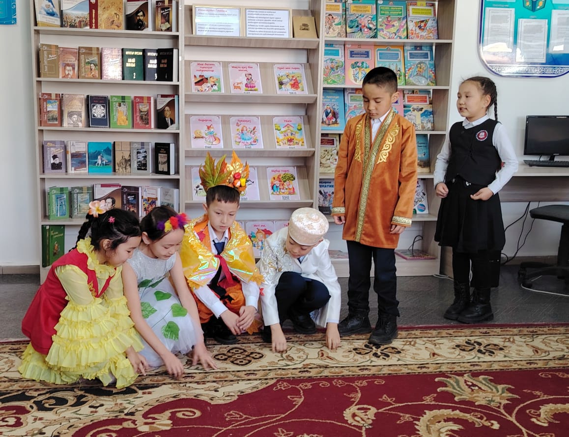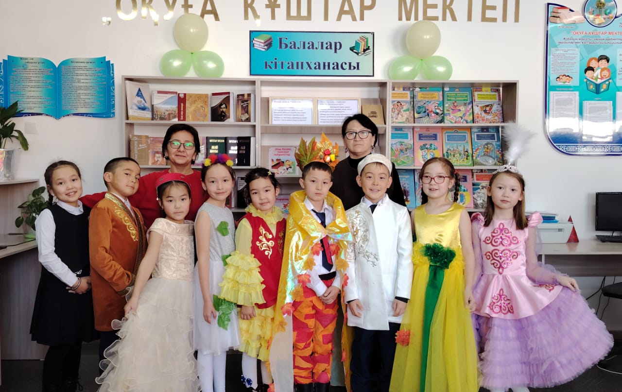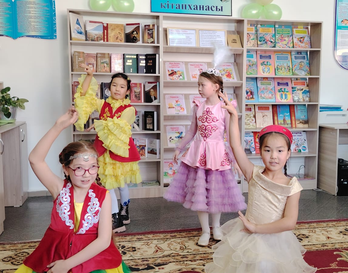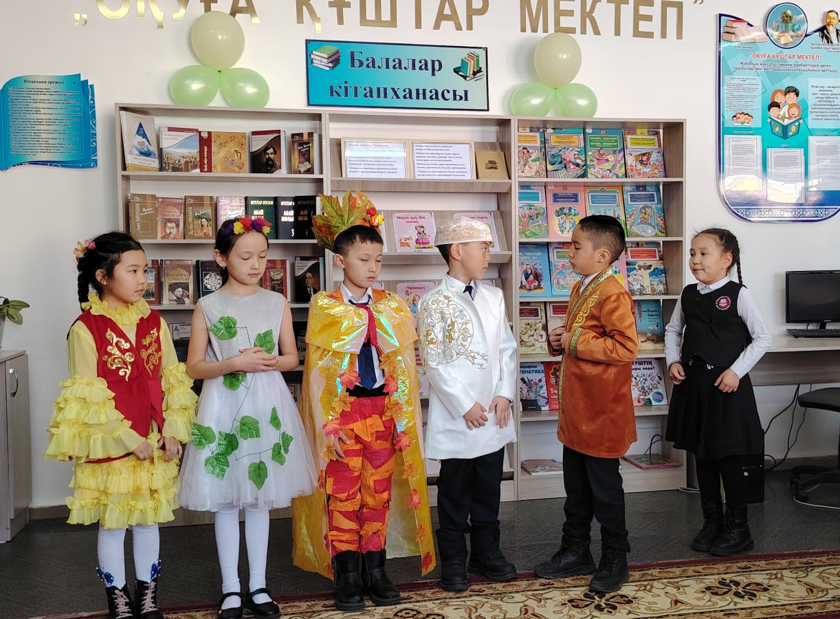 Мектеп кітапханасында "Балалар кітапханасы" жобасы аясында "Бір сынып-бір кітап" қазақ халық ертегілерінен «Жылдың төрт мезгілі» атты ертегіден 3 «в» сынып оқушылары көрініс көрсетті. Мақсаты: балалардың ертегі жайлы ұғымдарын тиянақтау, тіл байлығын арттыру, баланың ойын дұрыс айта білуге тәрбиелеу.