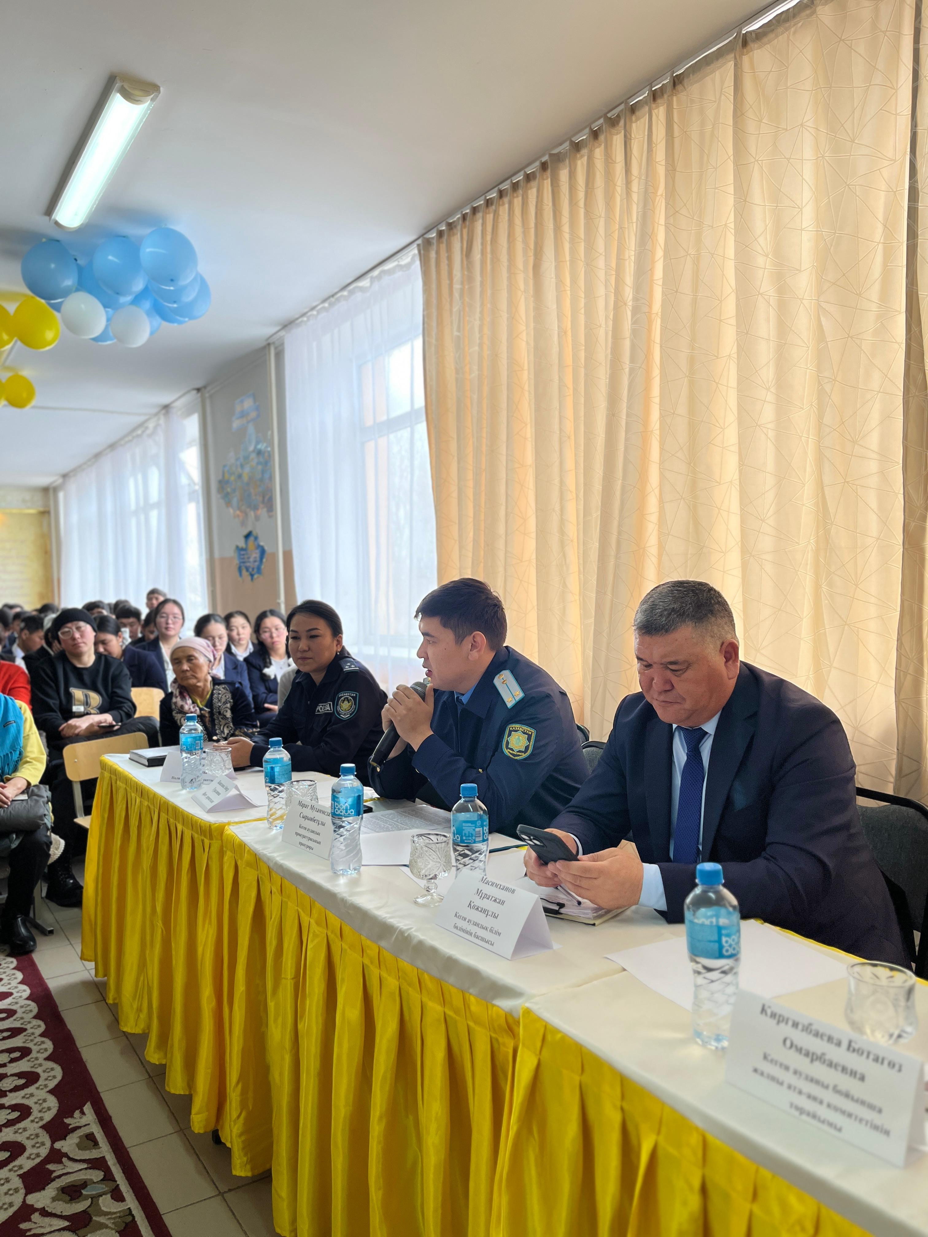 Кеген ауданы бойынша жалпы ата ана комитетінің төрайымы Киргизбаева Ботагөз Омарбаевна және полиция аға лейтенанты Қырманшиева Қарлығаш Мәлікқызы, мектеп- гимназия директоры Мусаева Қуан Несипбековна келіп өз ойларын ортаға салып, түсіндірме жұмыстарын жүргізді. Сонымен қатар, мектеп психологтары баяндама жасап, тренинг- жаттығулар жүргізді.