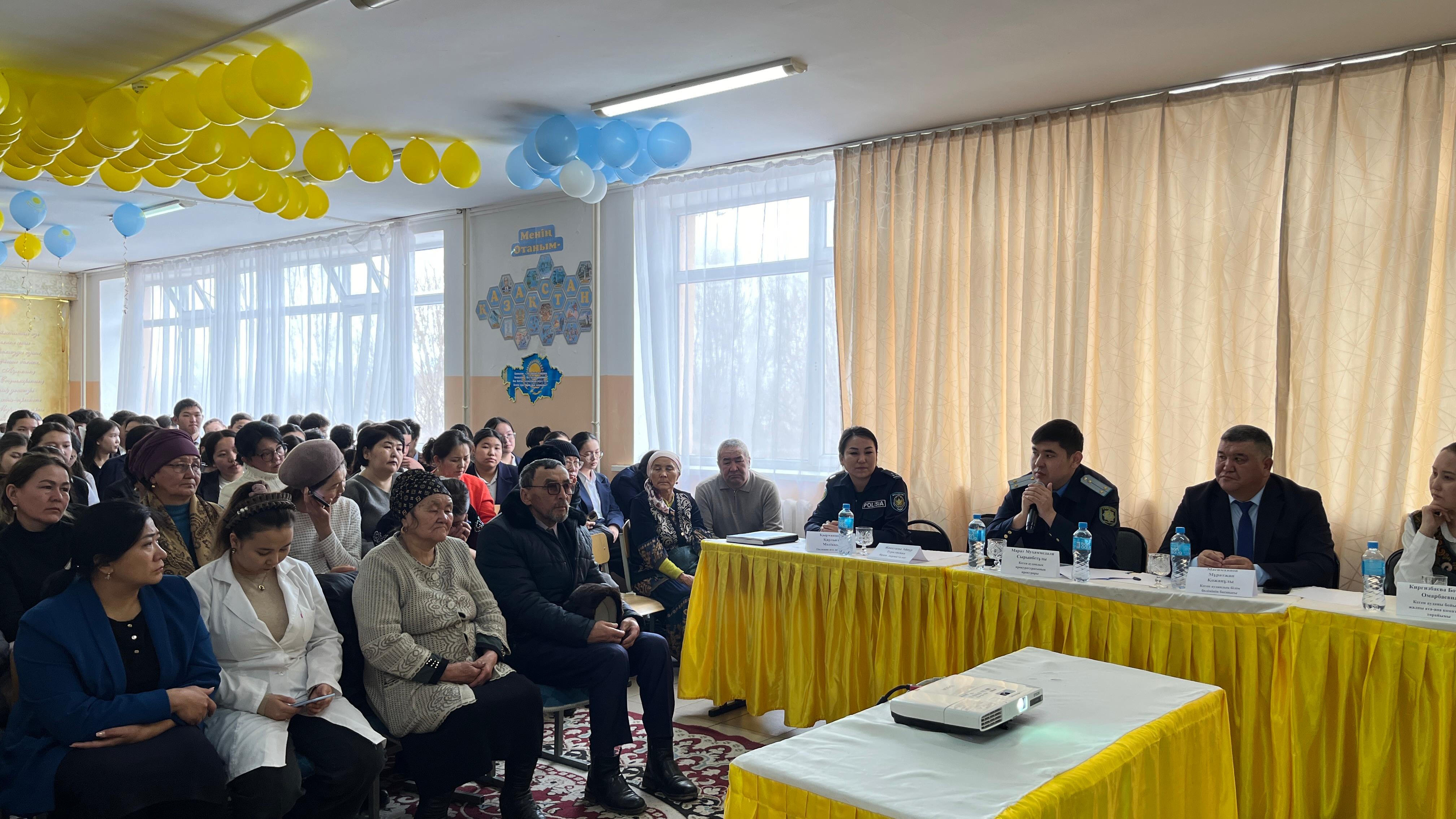 "Сәдуақас Серкебаев атындағы мектеп- гимназиясы" коммуналдық мемлекеттік мекесінде 9-10-11 сынып білім алушылары мен ата -аналарға " Кәмелетке толмағандар арасындағы аутодеструктивті мінез- құлықтың алдын алу" тақырыбында кездесу кеші ұйымдастырылды.